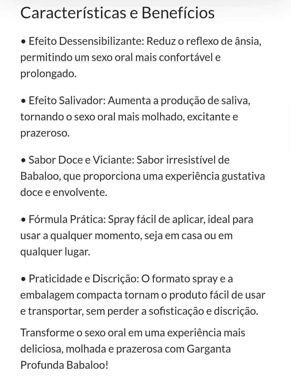 Transforme o sexo oral em uma experiência mais deliciosa, molhada e prazerosa com Garganta ProfundaCaracterísticas e Benefícios